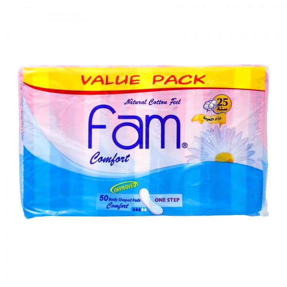فام ماكسي من دون أجنحة حجم سوبر متوفّرة بـ 50 فوطة سميكة لتأمين حماية مثالية وامتصاص فائق. وهي تؤمن لك ملمس القطن الطبيعي لراحة أكثر.