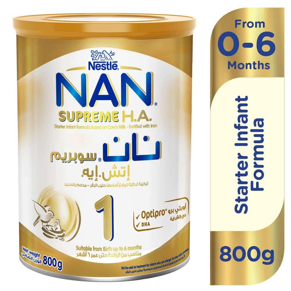 نان إتش إيه رقم 1 تركيبة غذائية منخفضة التحسس أساسها حليب البقر للرضع المحتمل إصابتهم بالحساسية و مدعّم بالحديد عبوه 800 جم. يُستخدم منذ الولادة حتى 6 اشهر. يحتوي على BIFIDUS BL مجموعة من الخمائر الطبيعية النشطة التي تدعم بكتريا الأمعاء النافعة وصحة جهاز طفلك الهضمي.